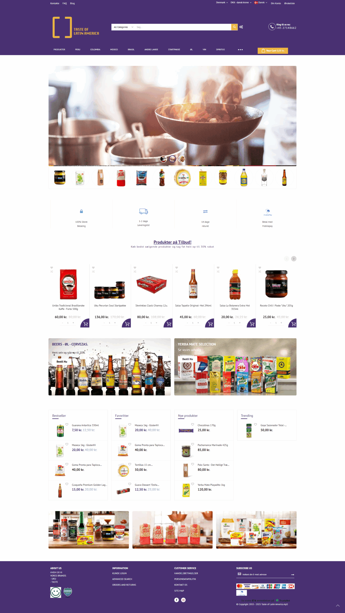 De ahí Sabor de América Latina Cuando vine a Dinamarca hace 14 años, no podía prescindir de la comida latinoamericana, y especialmente de la peruana. Y cuando descubrí que muchos de mis ingredientes favoritos eran casi imposibles de conseguir en estas latitudes, decidí importarlos yo mismo. En 2014 se convirtió en el punto de partida de Taste of Perú, como se bautizó entonces al negocio. Sin embargo, rápidamente me encontré con un interés que se extiende mucho más allá de las fronteras del Perú y una demanda de ingredientes de toda América Latina. Después de una continua expansión natural del negocio, hoy se llama Taste of Latin America. Gracias a esto, tengo el privilegio de poder compartir mi pasión por la comida con los entusiastas y restaurantes locales de la comida latinoamericana y danesa que, como yo, aman la cocina latinoamericana. Todo lo que encuentras aquí son exactamente los ingredientes con los que cocinamos en Perú, Brasil, México y el resto de América Latina. Si algunos de los ingredientes son nuevos para usted o si tiene alguna duda, pregúnteme. Siempre estoy dispuesto a enviarte una receta y compartir mis conocimientos: ¡todos mis clientes son recibidos con amor y alegría por la comida!
